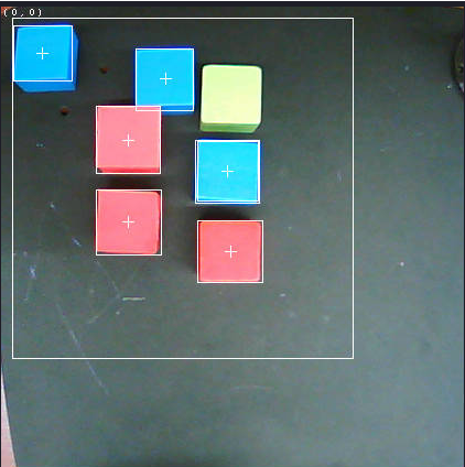 We can see that there is a (0, 0) point at the top left of the preview image. We need to put an object(in this demo, we use colorful woodblock) at the (0, 0) point and move air-pick above the (0, 0) point with the Basic panel. Replace the ARM_Origin_x and ARM_Origin_y value in the demo code: