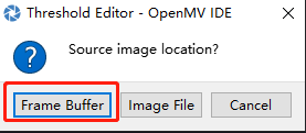 Click Tools -> Machine Vision -> Threshold Editor -> Frame Buffer to start editing color threshold.